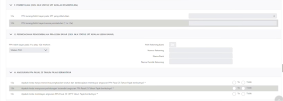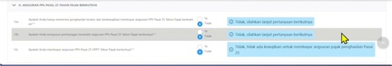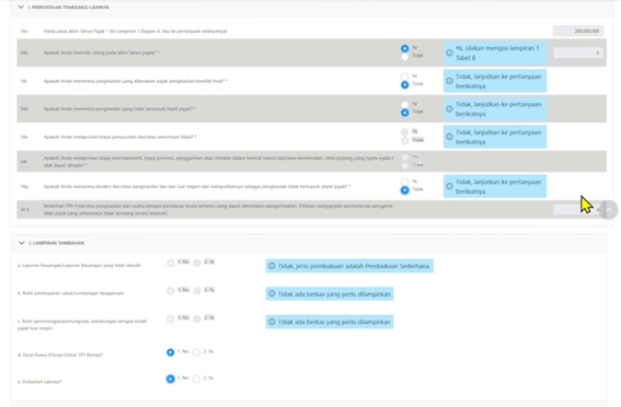Setelah melengkapi Lampiran L-I, maka langkah selanjutnya adalah melengkapi SPT Induk dengan menceklis “Ya” atau “Tidak” pada bagian lain seperti contoh dibawah ini: