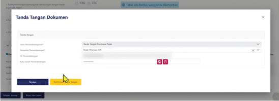 Setelah memilih “Bayar dan Lapor” maka akan muncul notifikasi untuk menandatangani dokumen dan klik “Konfirmasi Tanda Tangan”.