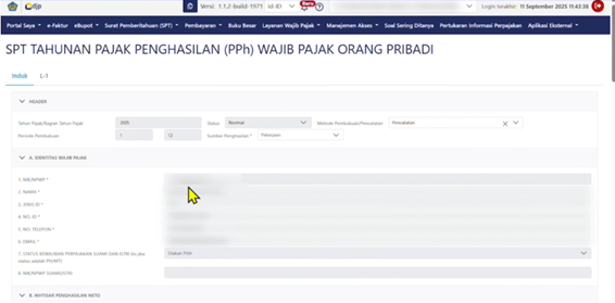 Sebelum mengisi SPT, lengkapi bagian A. Identitas Wajib Pajak sesuai dengan identitas diri.