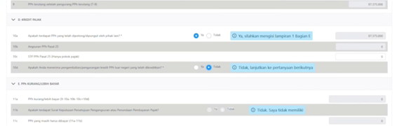 Langkah selanjutnya adalah kembali ke bagian Induk SPT dan menceklis “Ya” pada bagian D nomor 10a.