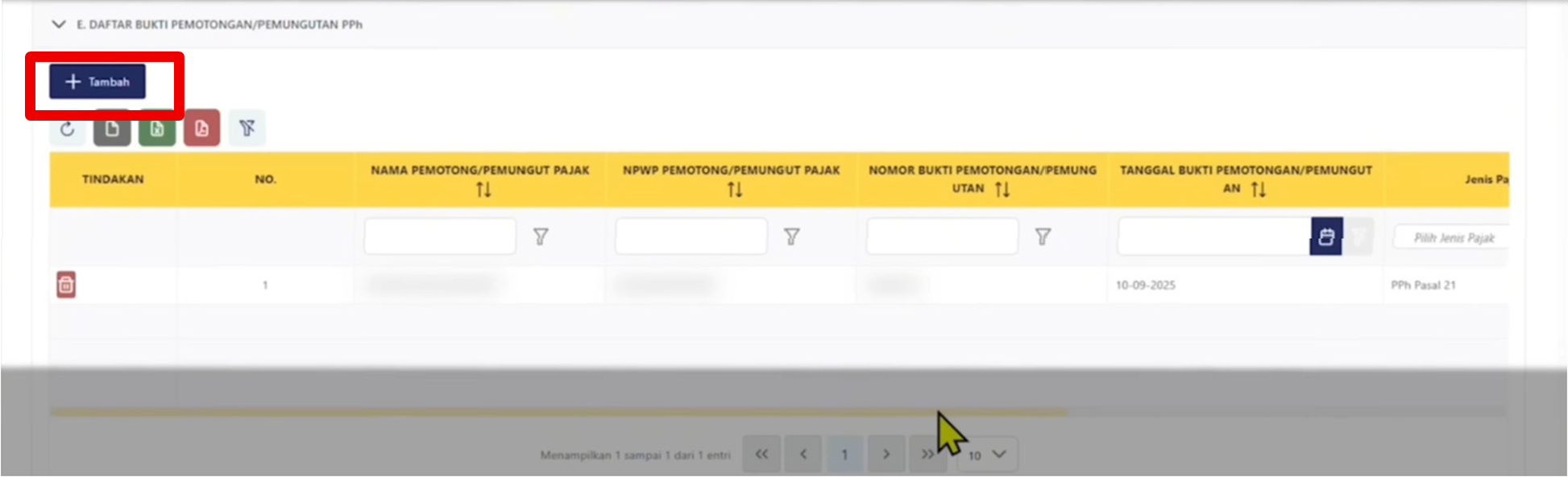 Pada Orang Pribadi yang memiliki 2 Bukti Potong dari perusahaan yang berbeda, maka dapat menambahkan secara manual dengan klik tombol “Tambah”.